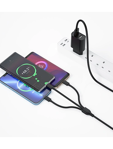 JR-CL25 3.4A 3-in-1 Car Charger with Coiled Lightning Cable Black