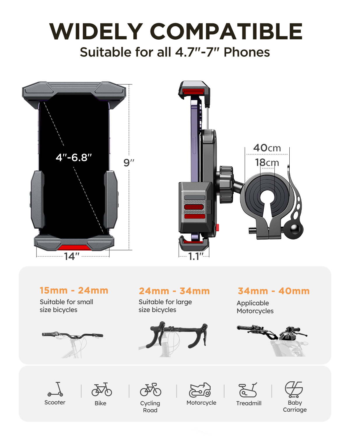 • Universal Compatibility – Fits phones from 4.7 to 7 inches, even with thick protective cases.