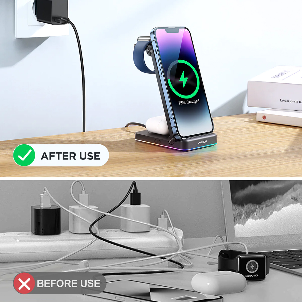 JR-WQN01 3-in-1 Foldable Wireless Charging Station