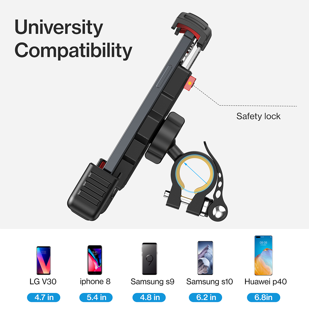 | Wide compatibility, and it supports clamping the 4.7-6.8 inch mobile phone; Mechanical interlocking design, and the back slide switch can provide reinforced protection, and it can resistant to bumping roads; 360° rotation angle, and free to switch the portrait or landscape screen modes; It can provide three sides anti-slip silicone protection, which can protect your phone from all-round;Toolless operation, fast installation and easy to dismantle;One-hand operation, push and take the phone out easily, safe and convenient. |